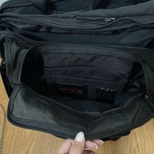 TUMI black nylon full zip messenger expander portfolio crossbody briefcase bag