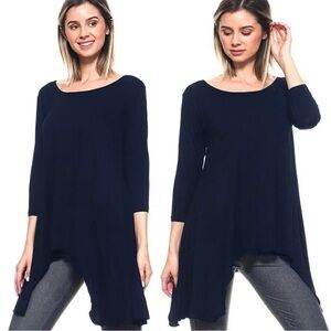 🌟🌟NWOT 💜 S, M, L 💜round neckline 💜3/4 sleeves 💜asymmetrical hem