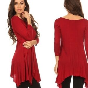 TUNIC TOP WITH ASYMMETRICAL HEMLINE - red