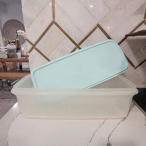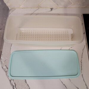 TUPPERWARE #782 Bread Celery Veggie Keeper 3 Piece Storage Container Aqua color