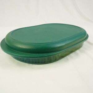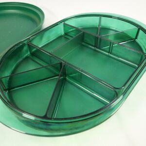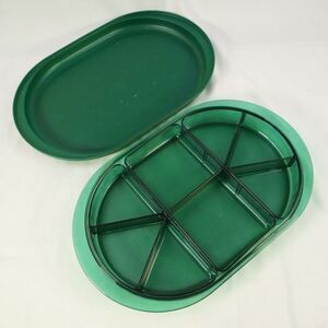 TUPPERWARE Green Jewel Tone Oval APPETIZER Dish W/Lid & Trays 2015A-1