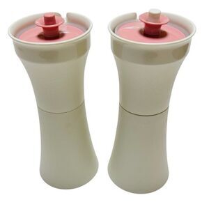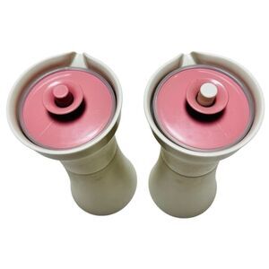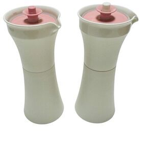 TUPPERWARE OIL VINEGAR SALAD DRESSING CRUETS SET Of 2 PINK PUSH TOPS #1246