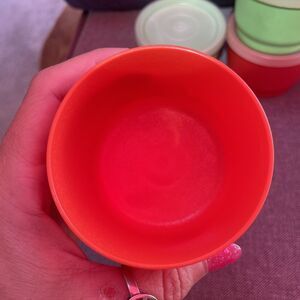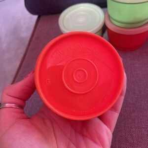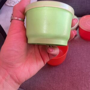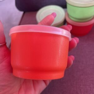 TUPPERWARE VINTAGE #1229 SNACK CUPS w SEALS SET OF 4 CUPS Orange Green