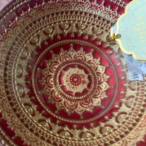Elegant red and gold decorative bowl. Intricate design. Made in Turkey.