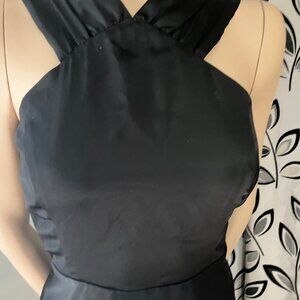 A halter neckline and sheer overlay make this dress a favorite for nights and occasions. The subtle print on the skirt takes it beyond just an LBD and the tie at the waist lets you do a bow for a sweet look or a loose knot for a sexy look. Heels with this please!