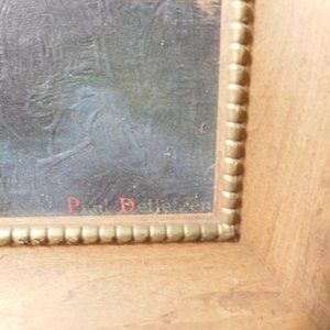The back of the frame has a paper backing which is torn in spots with some stains/marks/tape