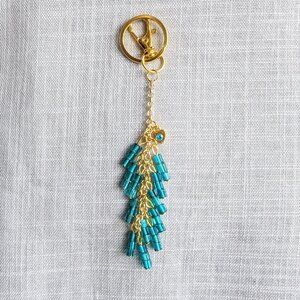 TURQUOISE & GOLD BEADED CHARM FOR HANDBAG PURSE TOTE BACKPACK OR KEYCHAIN