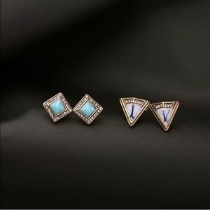 TURQUOISE, MARBLE & GOLD STUD EARRINGS SET
