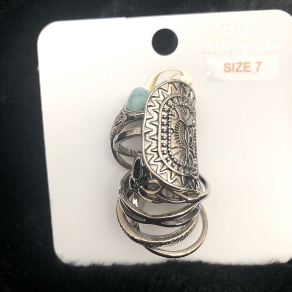 Brand new set of turquoise set of rings! See pics of the different kinds of rings in this set! Size 7.
