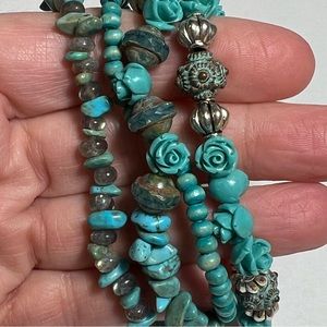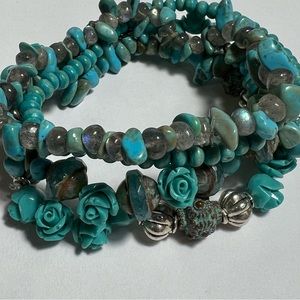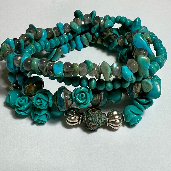 TURQUOISE and LABRADORITE handmade bracelets. Breaded stretchy stackable blue TURQUOISE and LABRADORITE handmade bracelets. Breaded stretchy stackable blue silver flowers. High quality. New never been worn. Unique one of a kind.