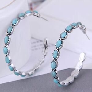 TURQUOISE BOHEMIAN HOOP EARRINGS