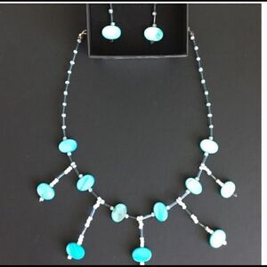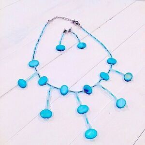 Gorgeous set of necklace and earrings in turquoise color, handmade.