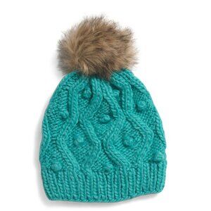 TURTLE FUR Turquoise Piper Beanie With Pom Accent
