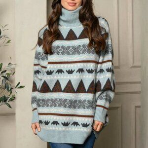 TURTLE NECK MULTI PRINT SWEATER Blue WOMEN'S