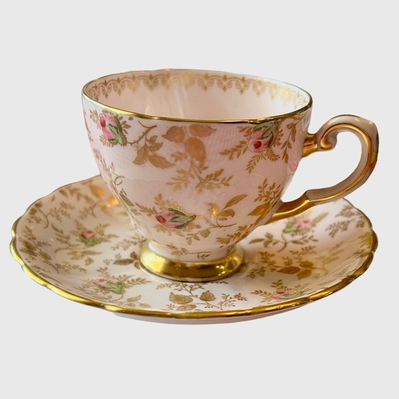 TUSCAN Tea Cup Saucer Set Fine English Bone China Pink Gold Floral 8606H…