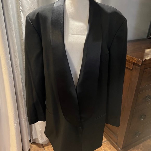 @britt_h7663y Hi, The jacket don't have label to the size, but the shoulders measure 20" , sleeve length 24 1/2 ", is perfect condition, was used one time.
