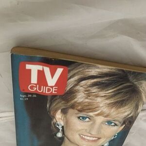 TV Guide Sept. 20-26 1997 PrincessRichard Chamberlain, Jimmy Stewart, Sharon Lawrence. Magazine has been used. Cover has some slight wear and creases. No writing inside. Generally good condition. Some ads from inside have been torn out. Name has been whited out of photos, but remains on actual magazine.