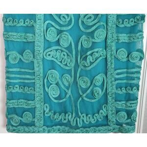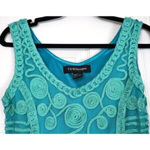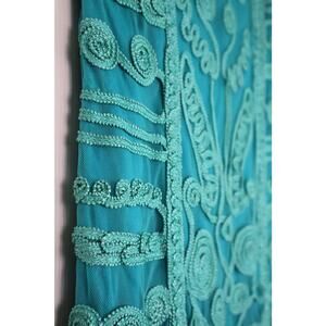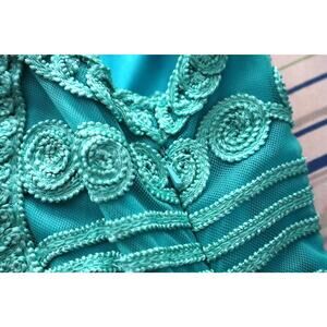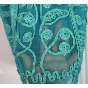 T&W Designs Blue and Green Embroidered Floral Mini Dress Short Cocktail Small