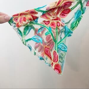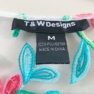 T&W Designs Floral Sheer Embroidered Bell Sleeve Pink/Blue Top