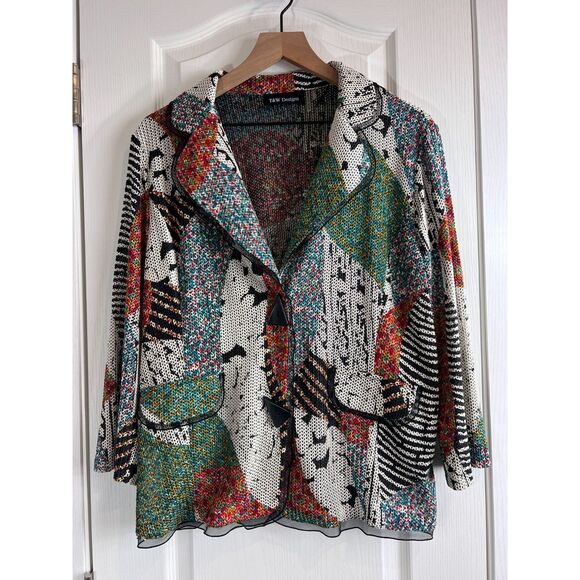 T&W Designs Women's Colorful Multicolor Two Button Blazer Jacket Size L