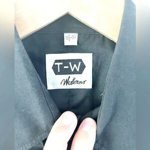 T-W Westerns Vintage Black Pearl Snap Cowboy Western Button-Up Shirt Sz 15.5-34
