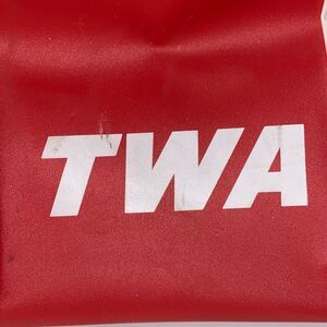 TWA Luggage Flight Bag Logo White Piping Zipper Vintage Carry On Metal Stud Feet