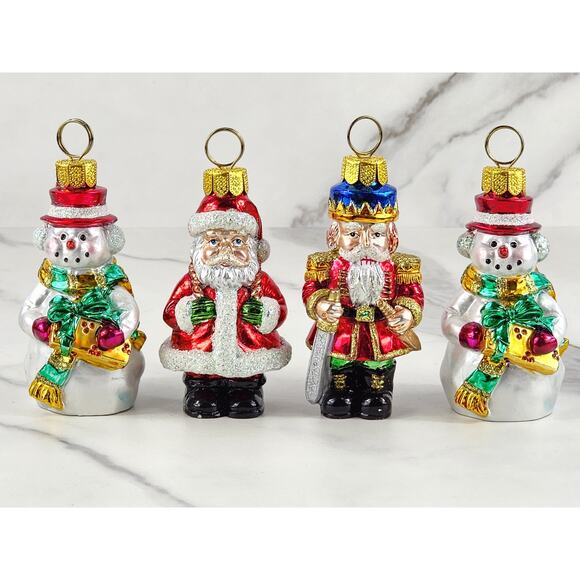 TWC Christmas Tree Ornaments Santa Snowman Nutcracker 4" Resin 90s Holidays x4