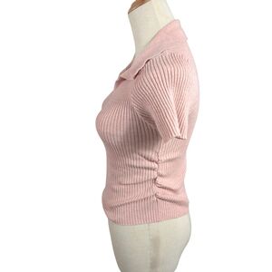 TWEE pink rose ribbed full stretch collared sweater. Ruching in the size. Suoer cute.iIghtweight