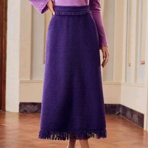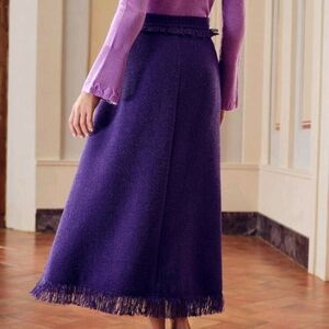 TWEED SOLID SLANT POCKET FRINGE HEM SKIRT