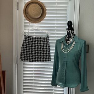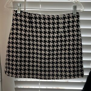 On trend. Very nice preowned skirt from forever 21 in size small. Hounds tooth skirt is fully lined with a hook closure and hidden zipper on the back. Next day shipping Monday through Friday.