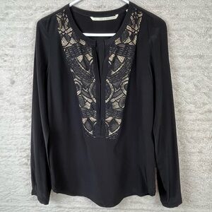 TWELFTH STREET By CHYNTHIA VINCENT Silk Blouse with Deep V-Neck Medium