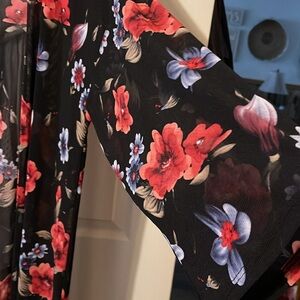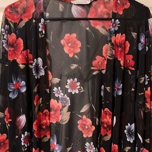 Elegant sheer kimono with vibrant floral design. Perfect for layering. Absolutely beautiful