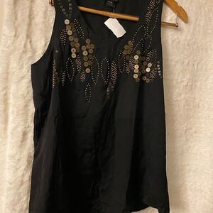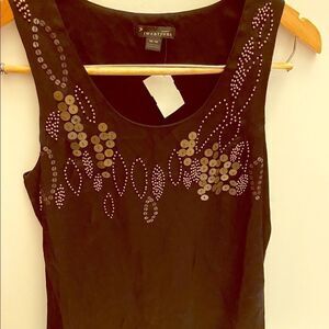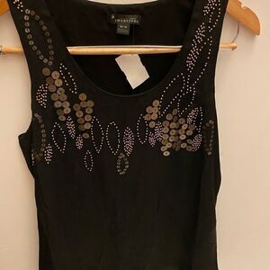 Women’s sleeveless soft black and gold tank top Medium available NWOT 💐