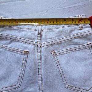 TWFS Distressed White Jean Shorts, Hip Cutout, with Flower Appliques - XS