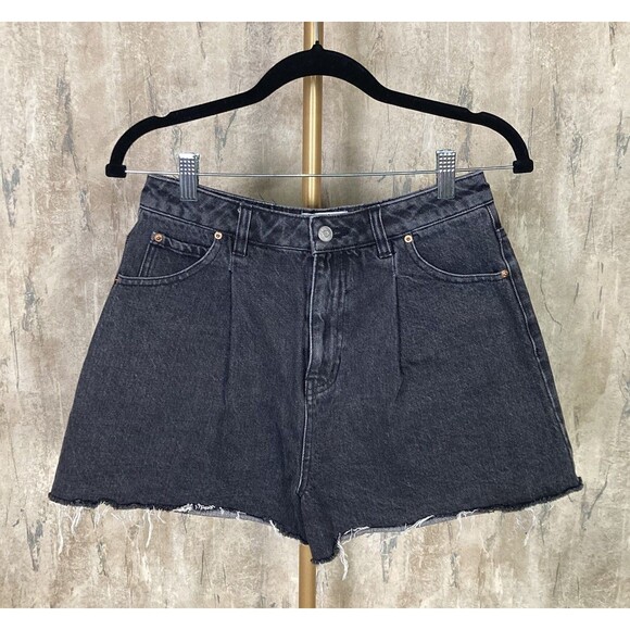 TWIK Par Simons Sz 28 Cotton Women Denim Pleated Black Cut Off Hi Waist Shorts