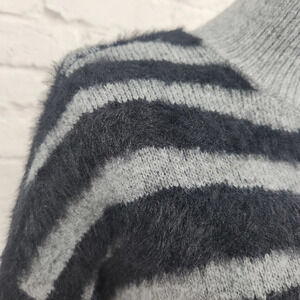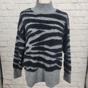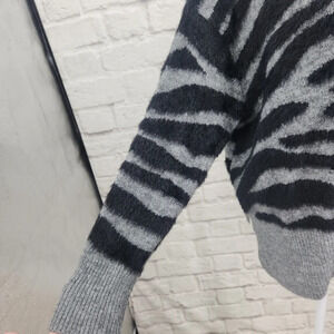 TWINE AND STRING Zebra Print Fuzzy Sweater GREY AND BLACK Oversized Medium