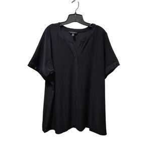 TWINHILL Blouse Women’s 2X Black Split Neck Stretch Short Sleeve Top Shirt