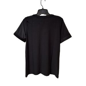 TWINHILL Blouse Women’s Small Black Split Neck Stretch Short Sleeve Top Shirt