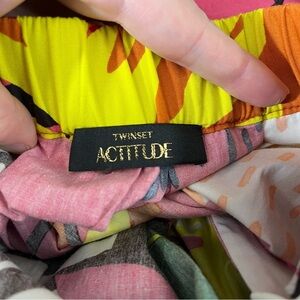 TWINSET ACTITUDE Printed Poplin Long Skirt. 221A2623. Actitude collection printed poplin long skirt with pleats, side zip, side pockets. An ally for your summer styles. Long skirt made from printed poplin, with pleats, side zip and side pockets. Wear it with high heels, flat sandals or trainers, depending on the mood. Elastic waist with side zipper. Coordinating top is not included.