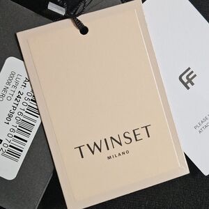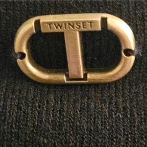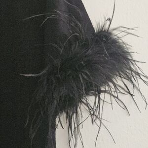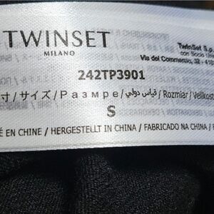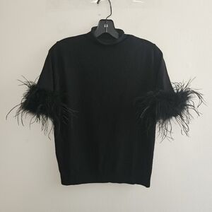 TWINSET MILANO BLACK MOCK NECK FEATHER SHORT SLEEVE SHIRT WOMEN'S SIZE SMALL