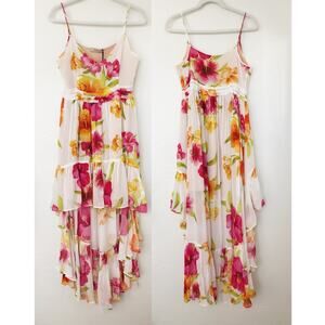 TWINSET Milano NWT Tropical Hibiscus Floral Georgette Asymmetric Dress Size 4