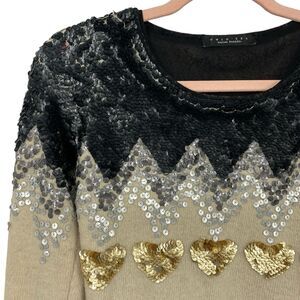TWINSET Sequin Wool Sweater Women Size XS Crewneck Holiday Hearts Pullover