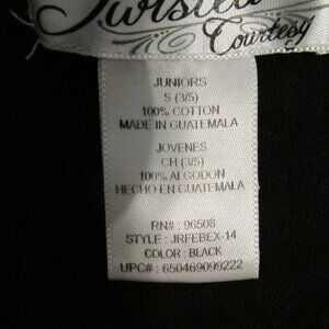 TWISTED COURTESY WOMEN'S JUNIOR'S SIZ S (3 / 5) T-SHIRT BLACK SILVER GRAPHIC TOP