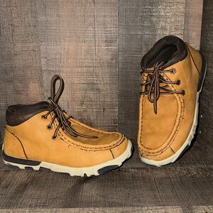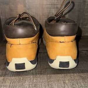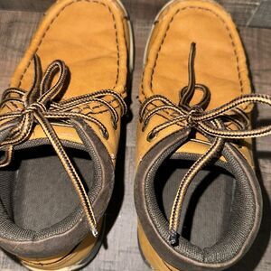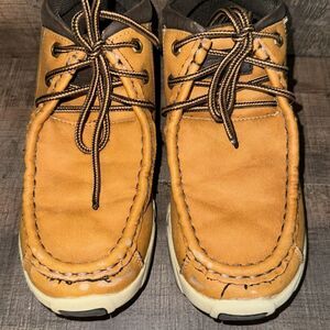 Faux leather- there is wear throughout the shoe- pics show— size 13. **PRICE REFLECTS CONDITION