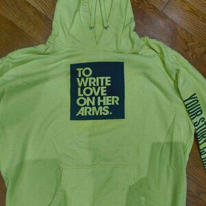 TWLOHA- neon yellow hoodie- Hope is Real. Help Is Real, Your Story is Important