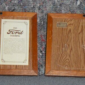 For Sale - Two 5" x 7" Framed Pictures by Wallace Berrie & Co. Including a 1911 Cadillac "Thirty" Demi-Tonneau Touring Car and a 1925 Ford Touring Black Touring. Both were used for display purposes. Frames have some minor signs of wear.