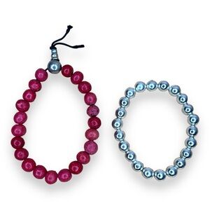 TWO BEADED BRACELETS STRETCH RED SILVER BOHO ADULE BOHEMIAN