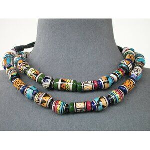 TWO Colorful Hand-Painted Ceramic Bead Necklace #1 IS 32" & #2 IS 26"