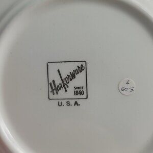 For sale is a SET of TWO (2) Harker Currier & Ives Homestead in the Wilderness. It depicts a small home/cabin in the wilderness and shows a woman feeding the chickens. The plates have a gadroon edge with gold trim and measure 6 1/4 inches. Both plates are in very good used condition with no chips, cracks or crazing. I have other bread plates with different scenes from this same pattern.