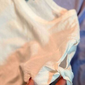 Short cap sleeves are slit on top & tied at bottom (see photos)